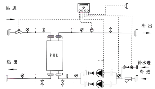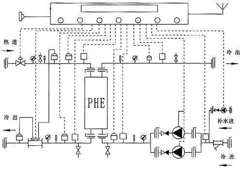 Manually control the heat exchanger unit, and manually control the water supply temperature of the secondary network of the heat exchanger unit through on-site direct reading instrument. Through the remote pressure gauge and controller, the water can be replenished automatically at constant pressure.
