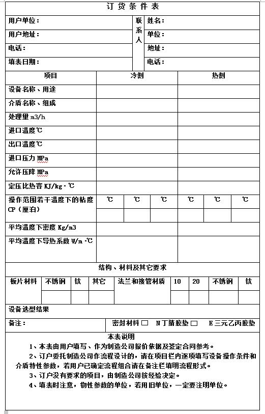 板式換熱器樣本